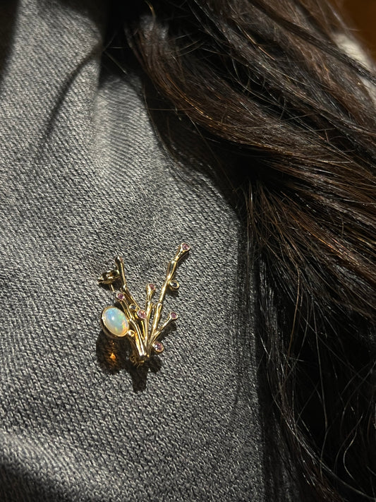 Auriella Gemstone and Opal Brooch 14k Real Gold plated