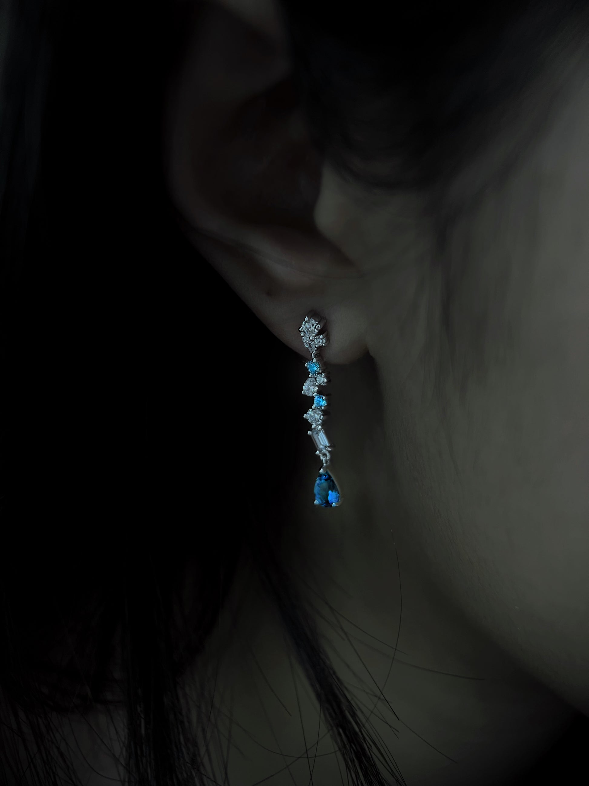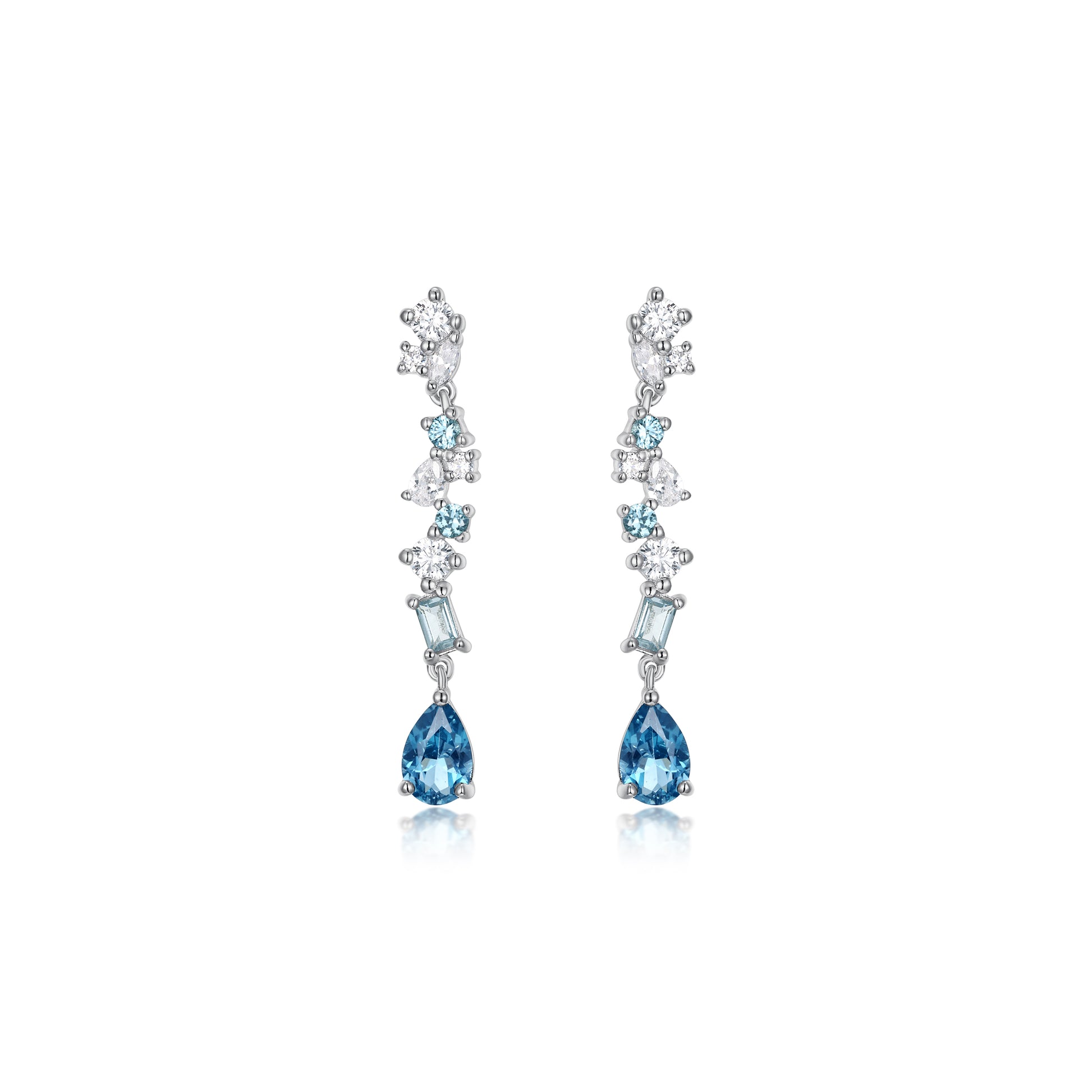 925 Sliver Dangle Earrings feature delicate London Blue Topaz stones paired with shimmering white accents, evoking the celestial beauty of the night sky. Like the tears of Artemis, exude an ethereal charm with their graceful blue and white combination.