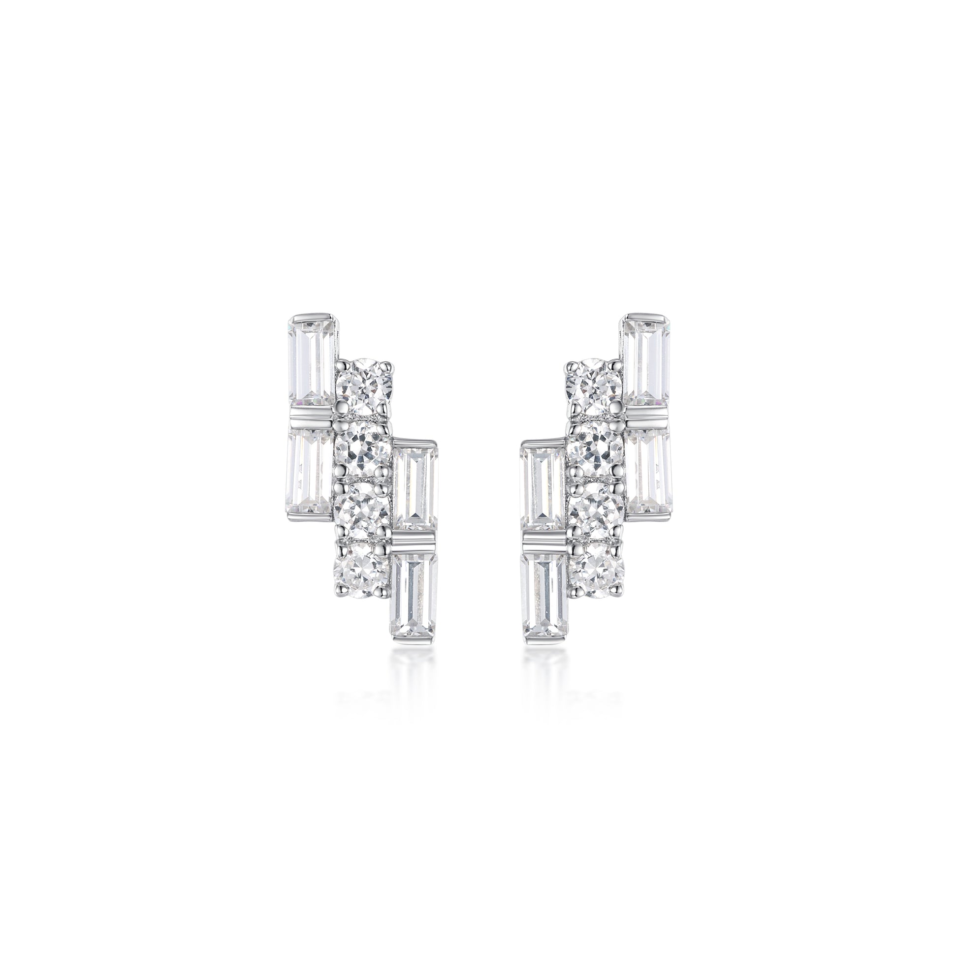 Sleek and modern, these geometric stud earrings combine icy brilliance with timeless silver tones. Perfect for any occasion, they exude elegance and effortless charm, adding a touch of refined sophistication to your look.