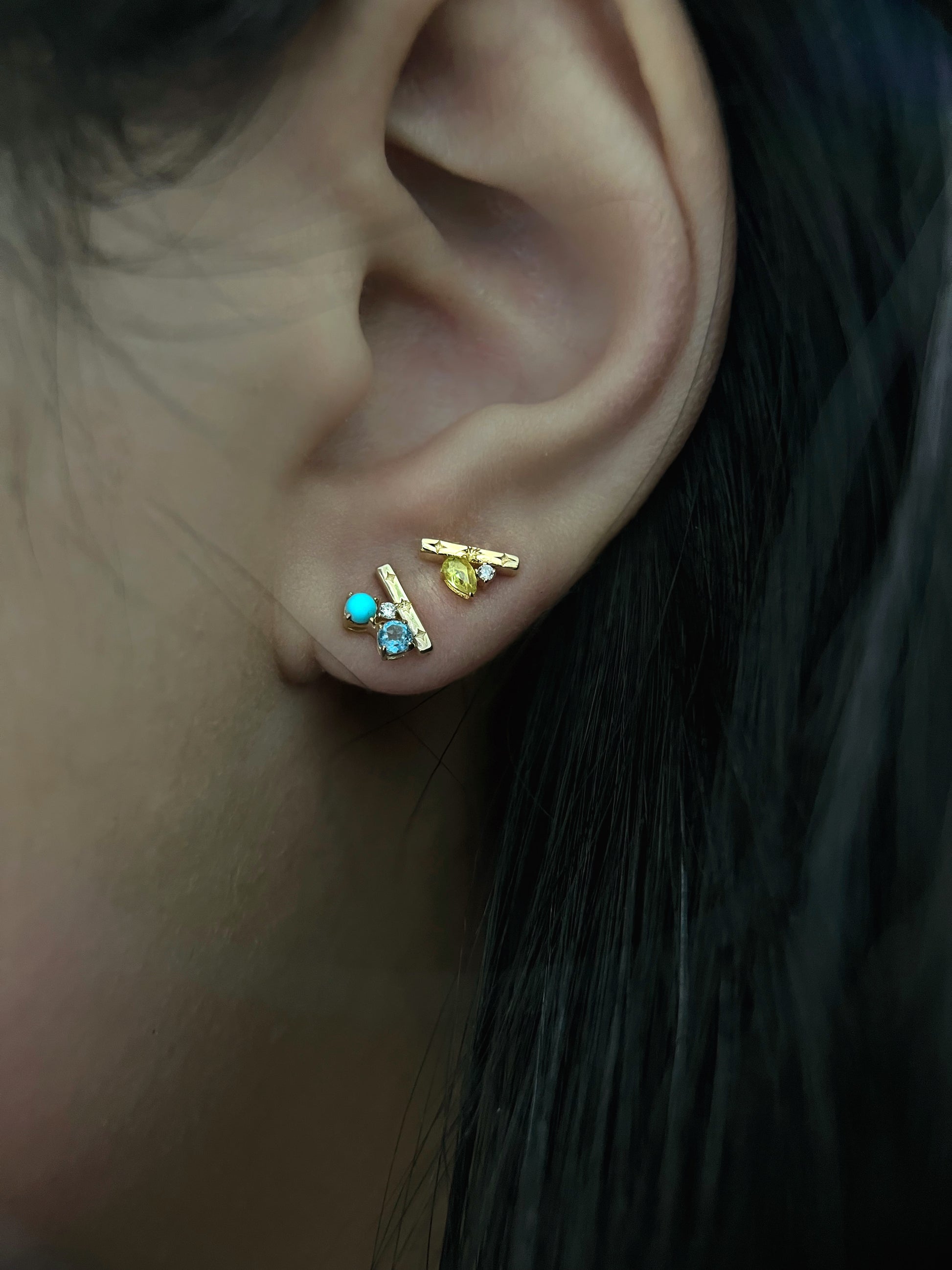 Auriella Mini Turquoise Asymmetrical Stud Earrings 14k Gold Plated