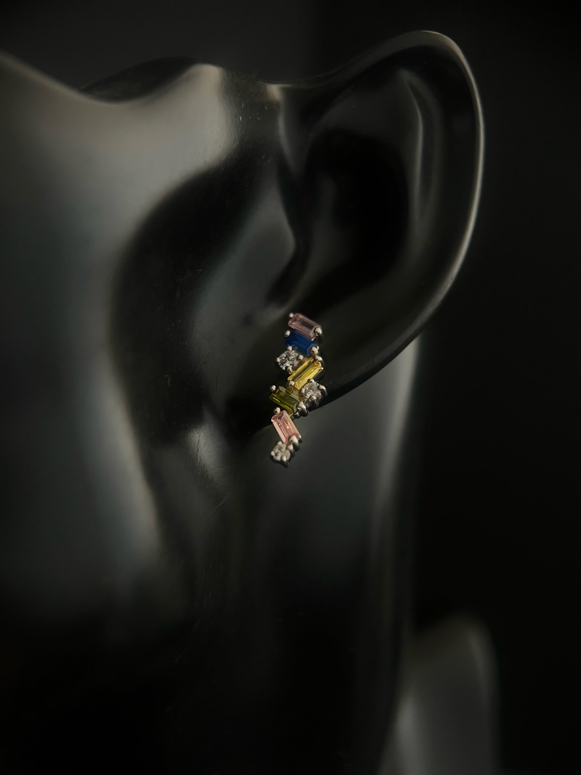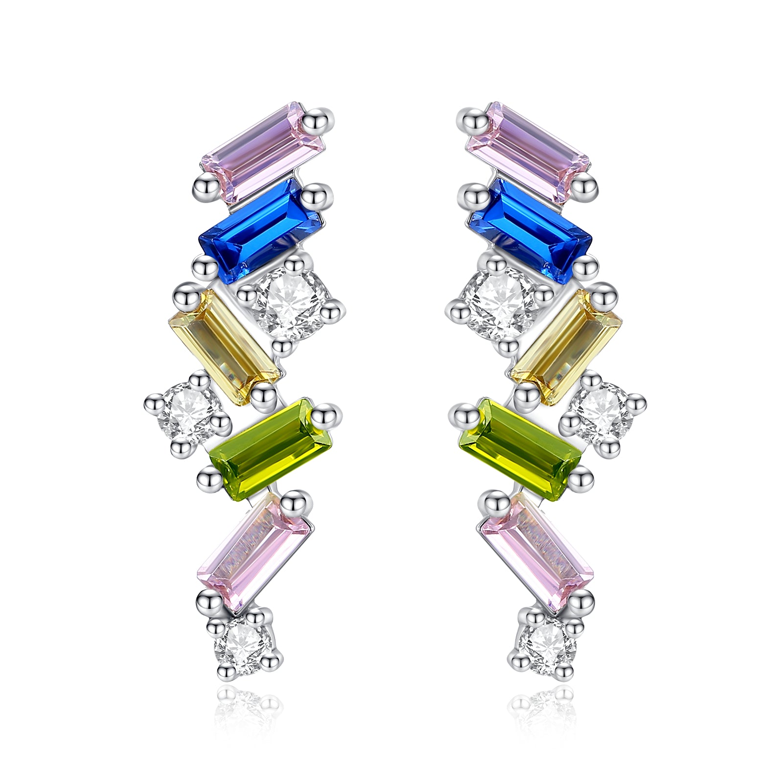 Add a playful pop of color to your look with these bold Cubic Zirconia Drop Earrings. Set in 925 sterling silver, their vibrant baguette and round stones create a statement piece full of modern charm.