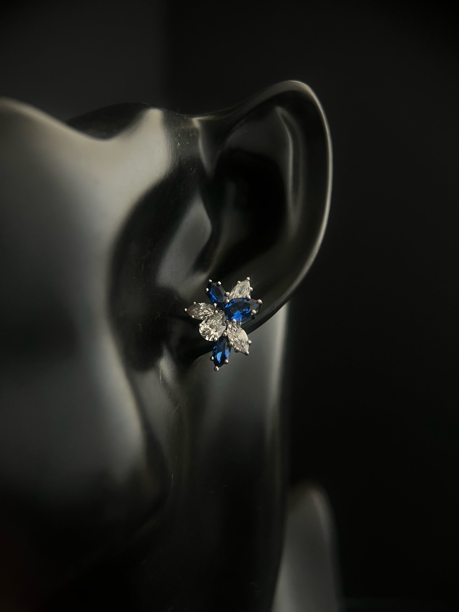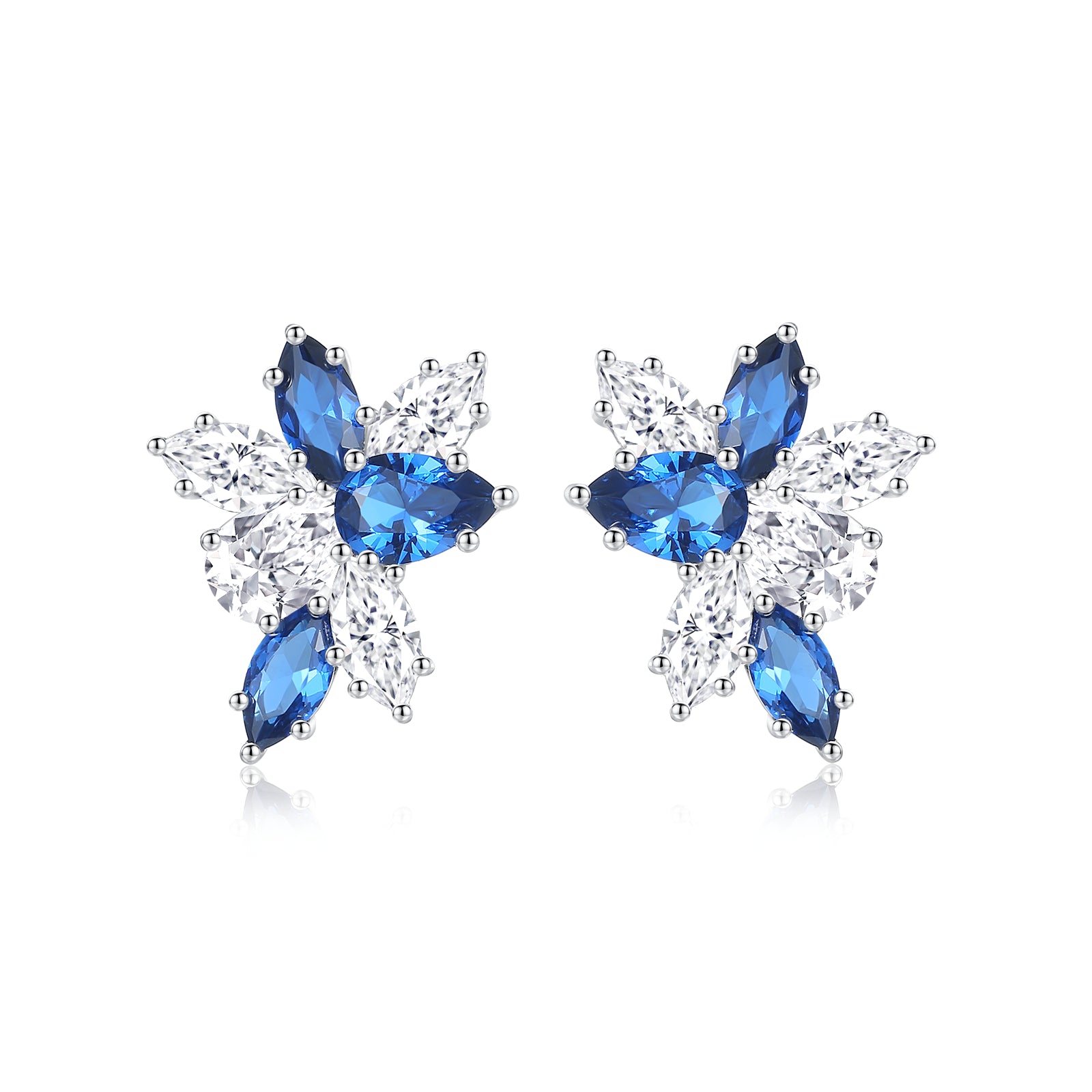 Elevate your elegance with these stunning Cubic Zirconia Stud Earrings. Crafted from 925 sterling silver, their intricate floral design and sparkling blue and white stones exude luxury and timeless beauty.