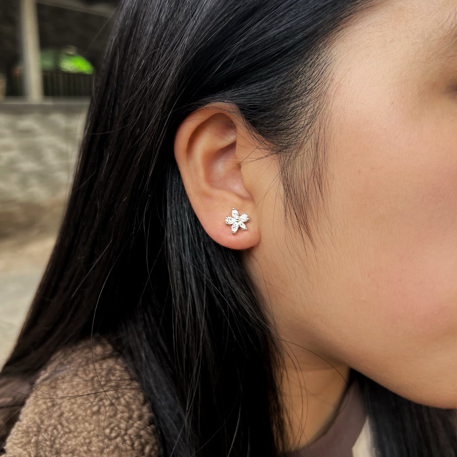 Auriella Dainty Cubic Zirconia Flower Stud Earrings