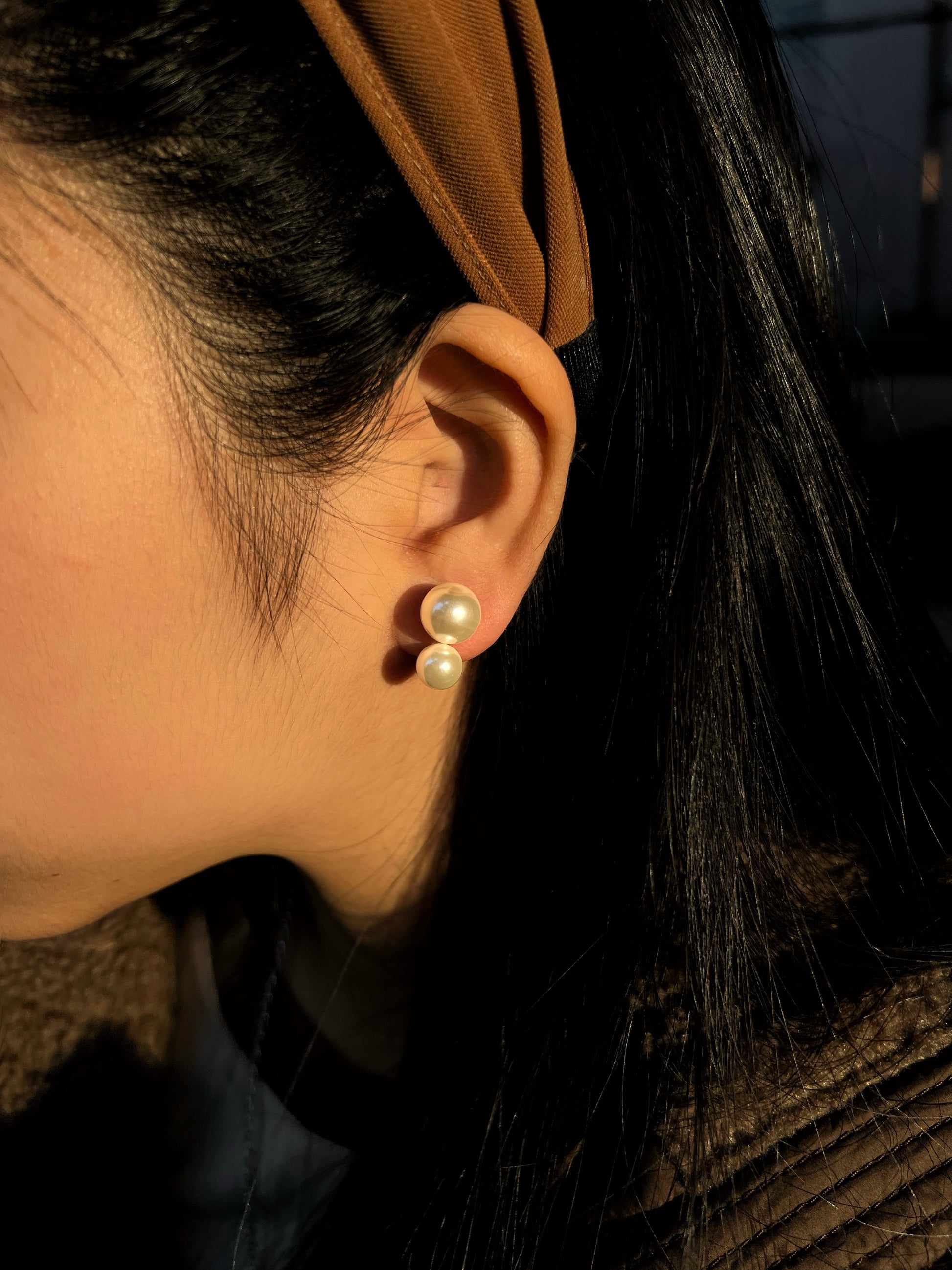Auriella Double Pearl Earrings 925 Silver- Bianca