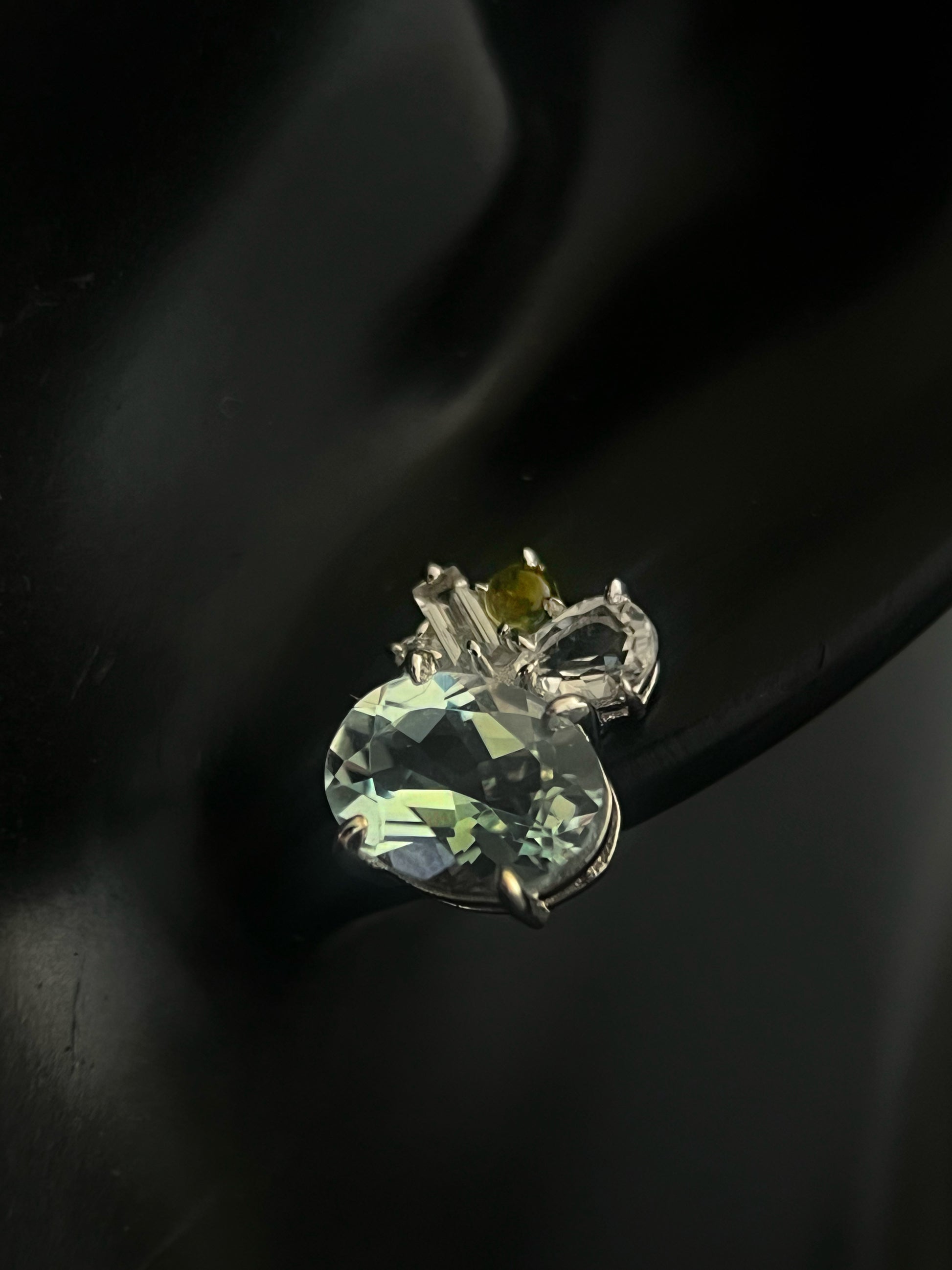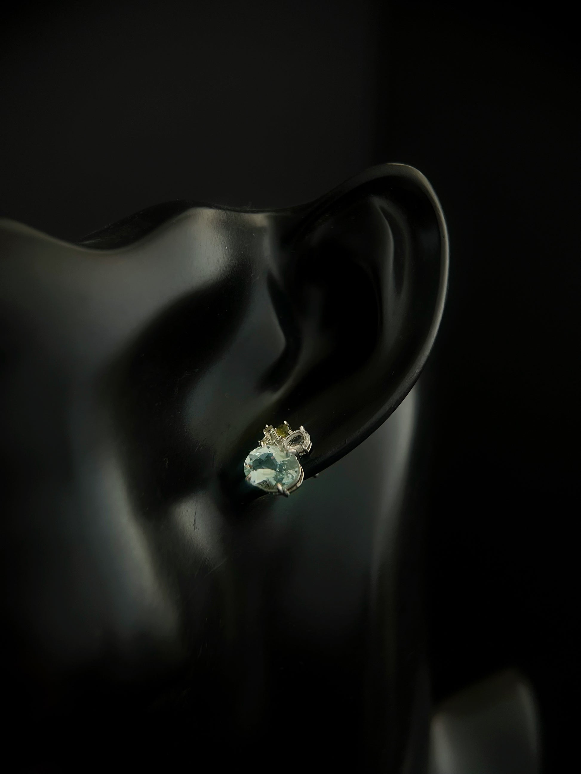 Indulge in the epitome of luxury with our exquisite gemstone stud earrings, meticulously crafted to showcase the finest aquamarine, topaz, and tourmaline. The centerpiece—a breathtaking aquamarine gem—is complemented by the sparkling clarity of topaz and the subtle vibrancy of tourmaline, creating a harmonious blend of color and brilliance.