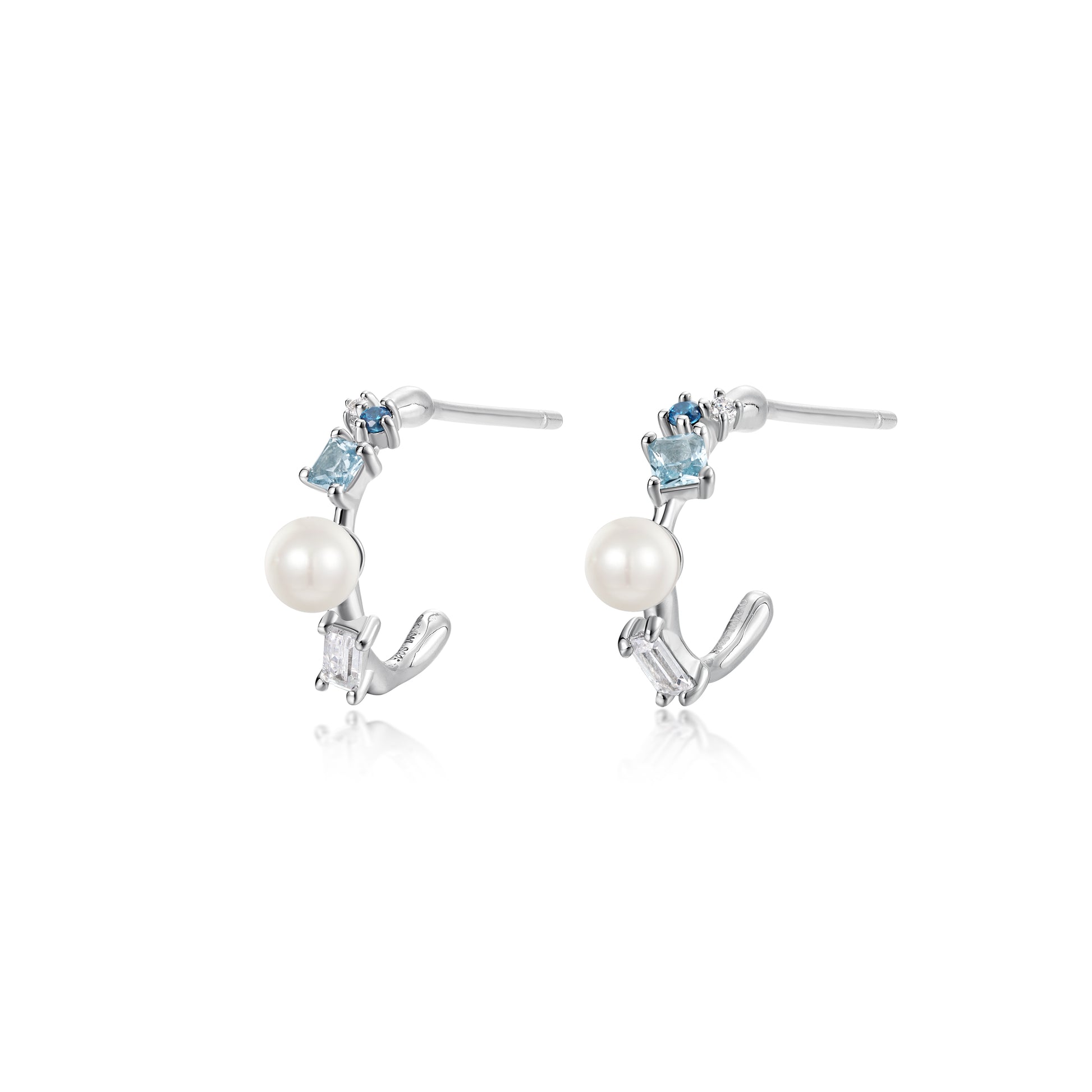 925 Silver Pearl and Topaz Stud Earrings exude a delicate balance of elegance and modern flair. Featuring radiant pearls, sparkling blue gemstones, and zircon accents in a unique crescent design, they add sophistication and charm to any look. Perfect for those who love graceful jewelry with a contemporary twist.